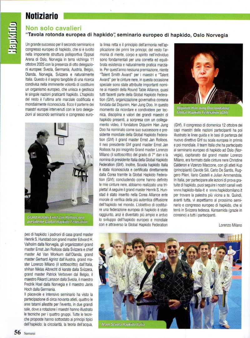 Il team Italia che ha partecipato al seminario europeo di Hapkido ad Oslo (Norvegia), capitanato dal Grand master Lorenzo Milano, era formato dalle cinture nere Christine Calderon e Vizenzo Maccone, con gli atleti Kup (principianti) Davide Sili, Carlo De Santis, Ruggero Pileri, Ilario Castelli e Julian Ammendola.